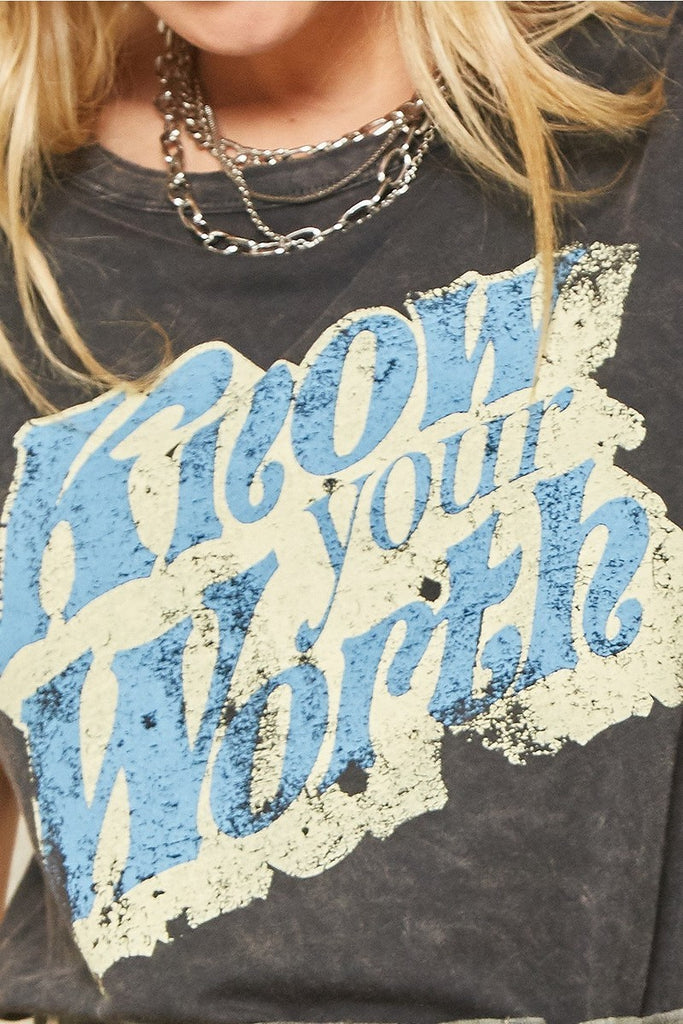 This tee is screen printed on a vintage wash charcoal tee. The fit is a ladies/juniors fit, NOT unisex.