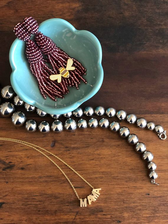 Our demi-fine mama necklace is a sweet reminder of our very favorite job! It makes the perfect gift for any mama or mama-to-be. The chain length is 18 inches. 24K gold plated silver.